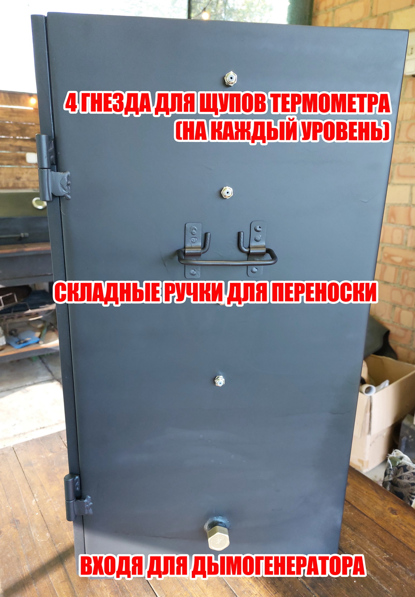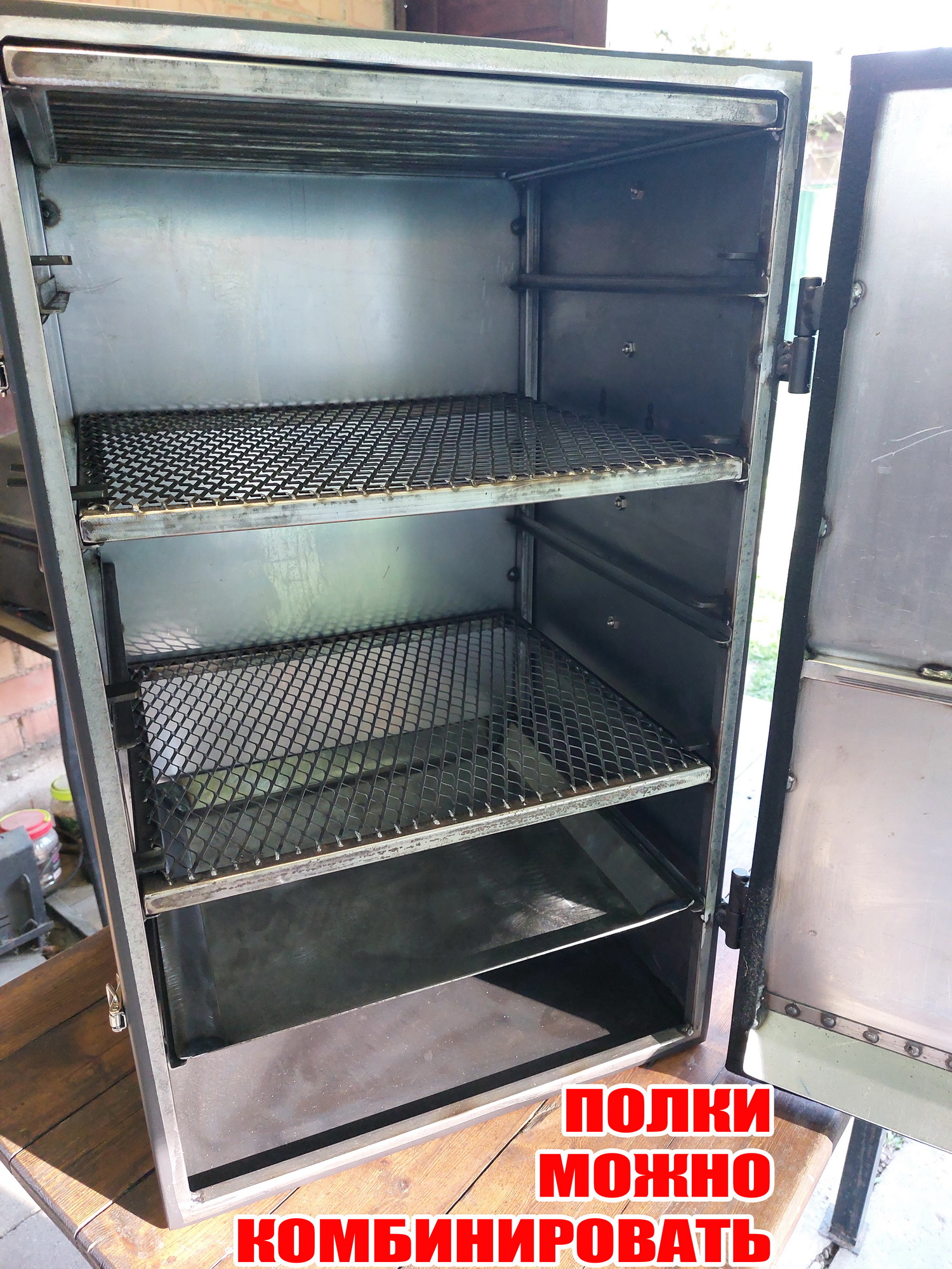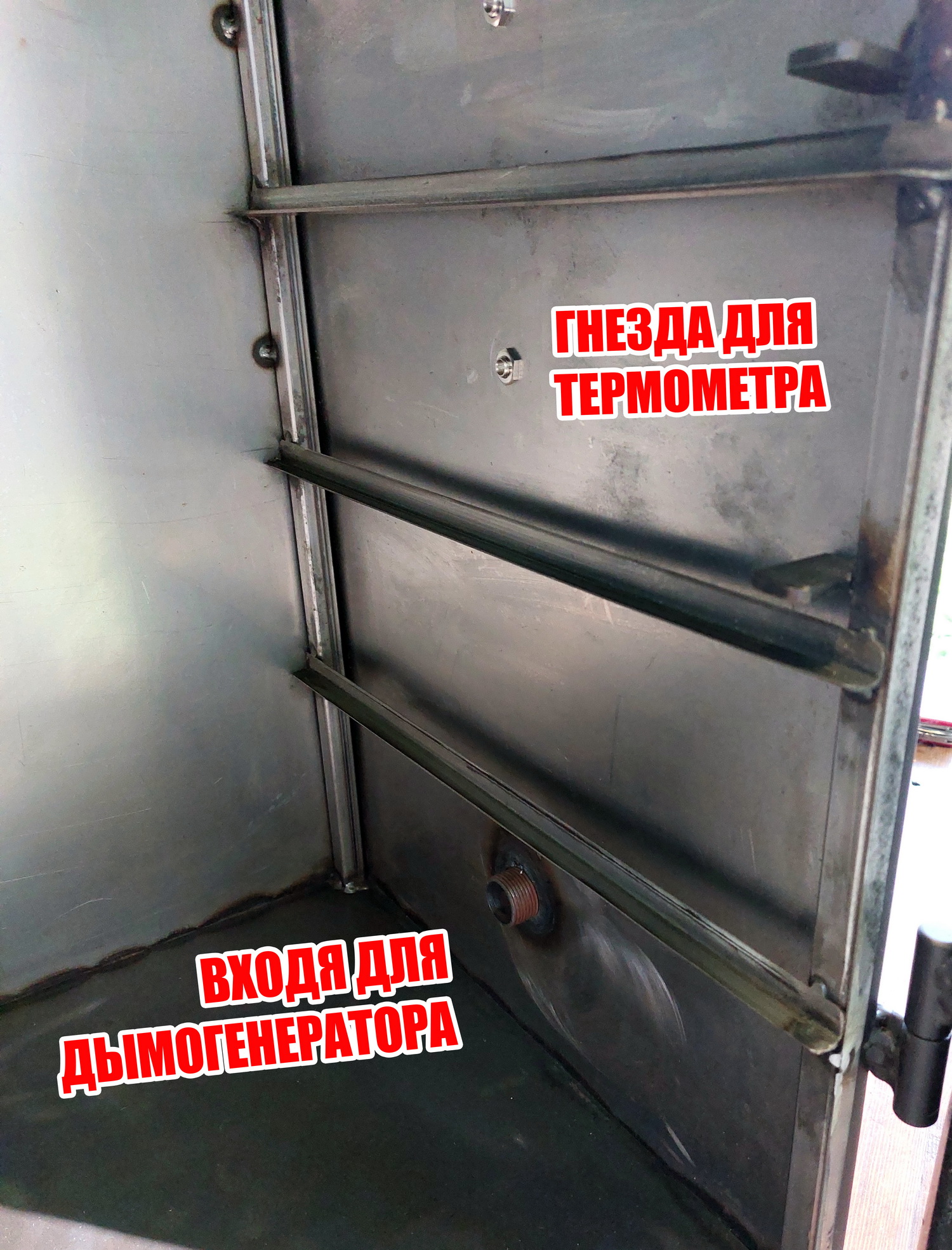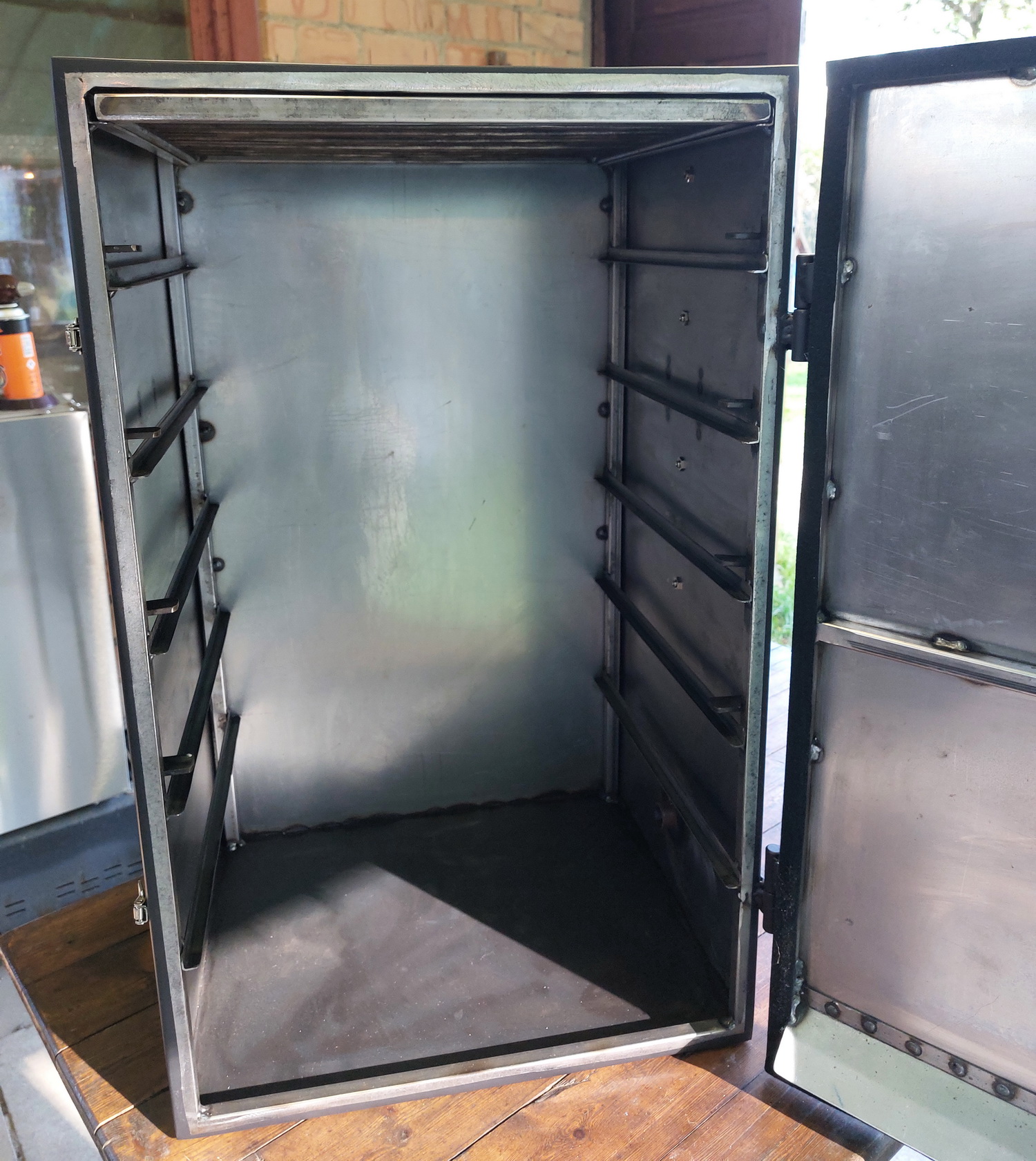 Перед первым использованием, коптильню хорошенько прогреть и прокоптить пустую. Прогревать минут 30-40, чтобы запеклась краска.
