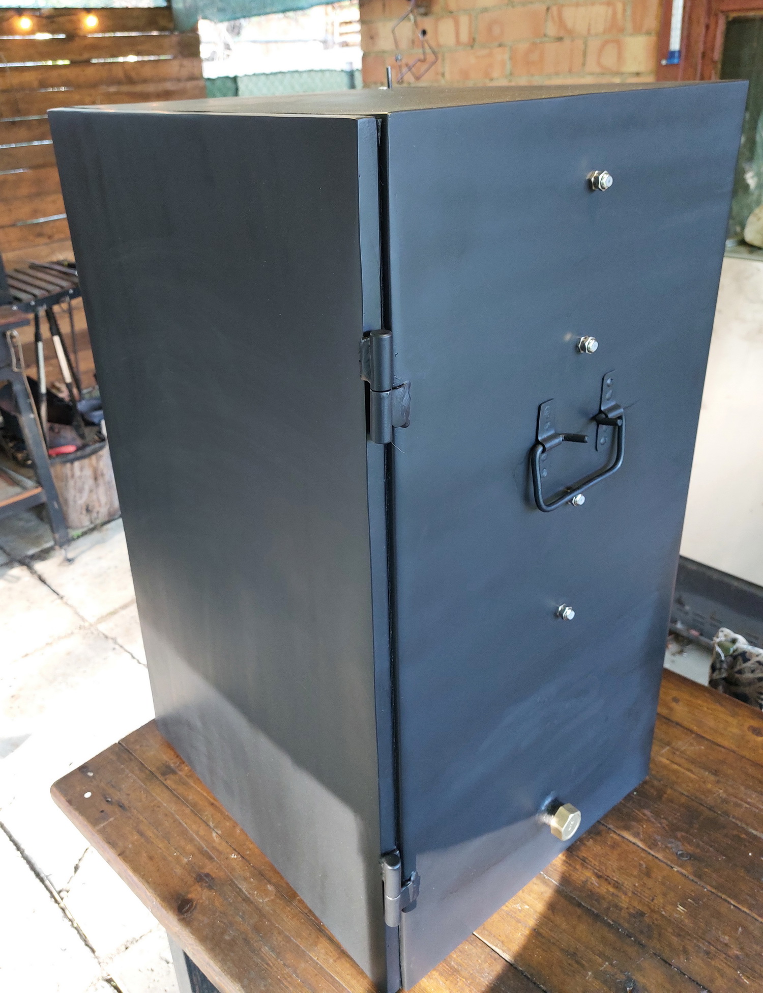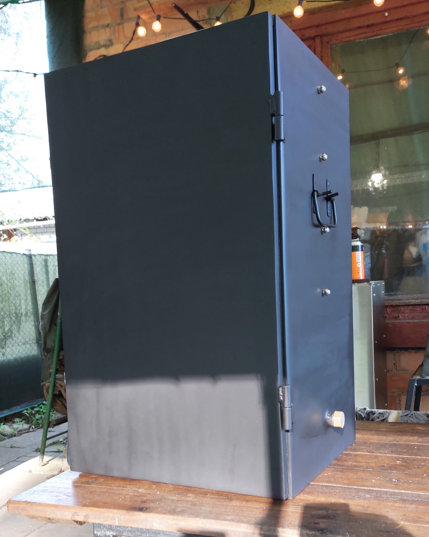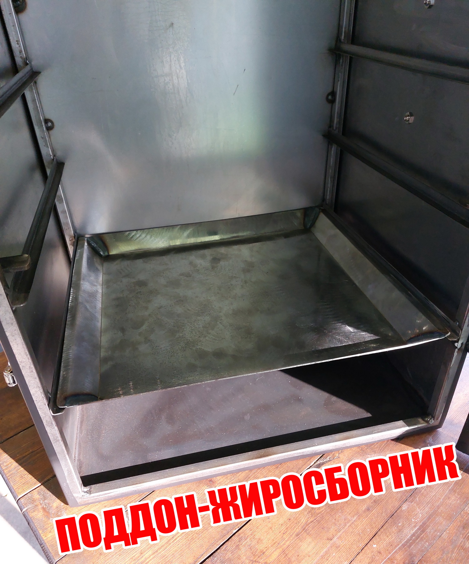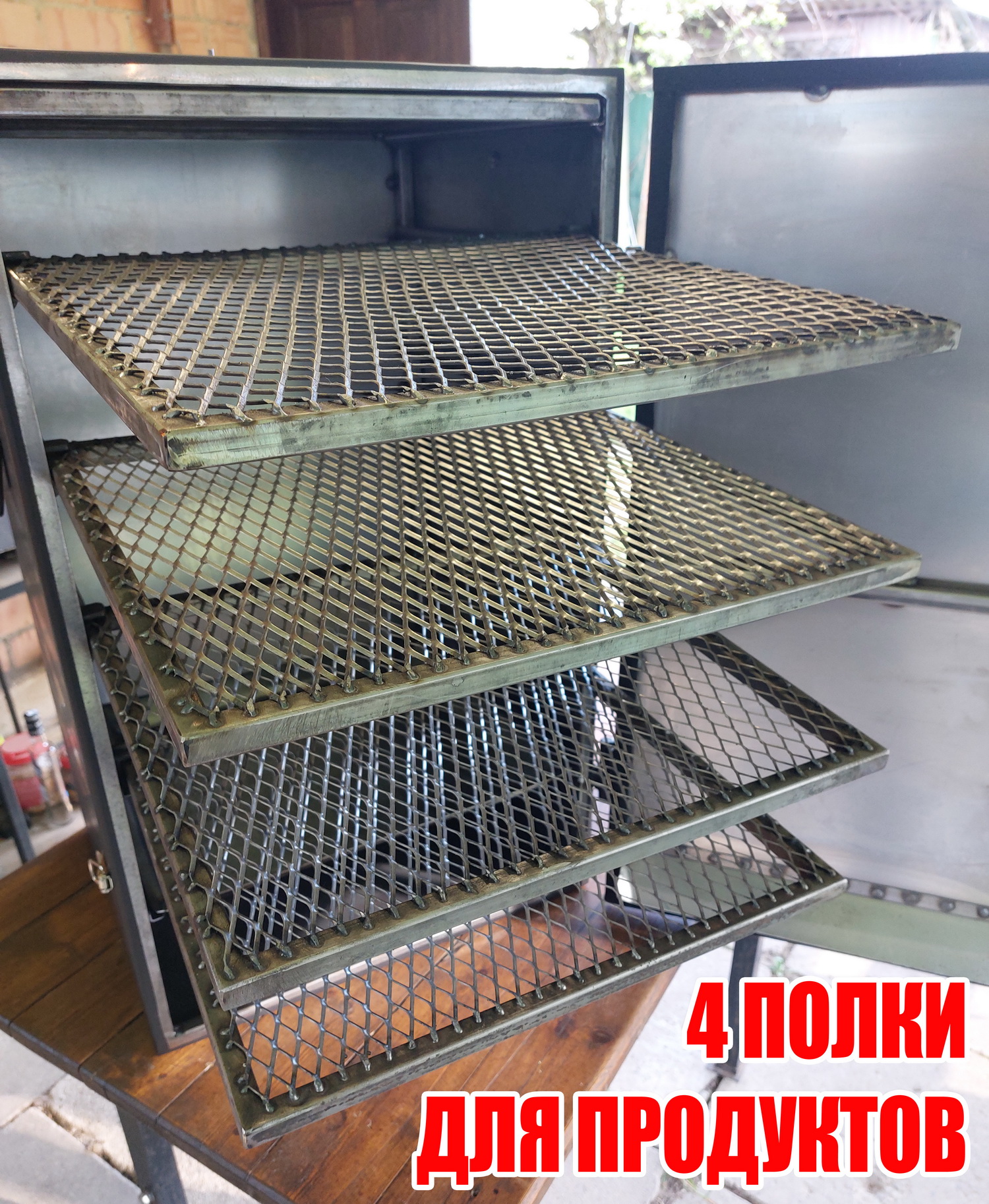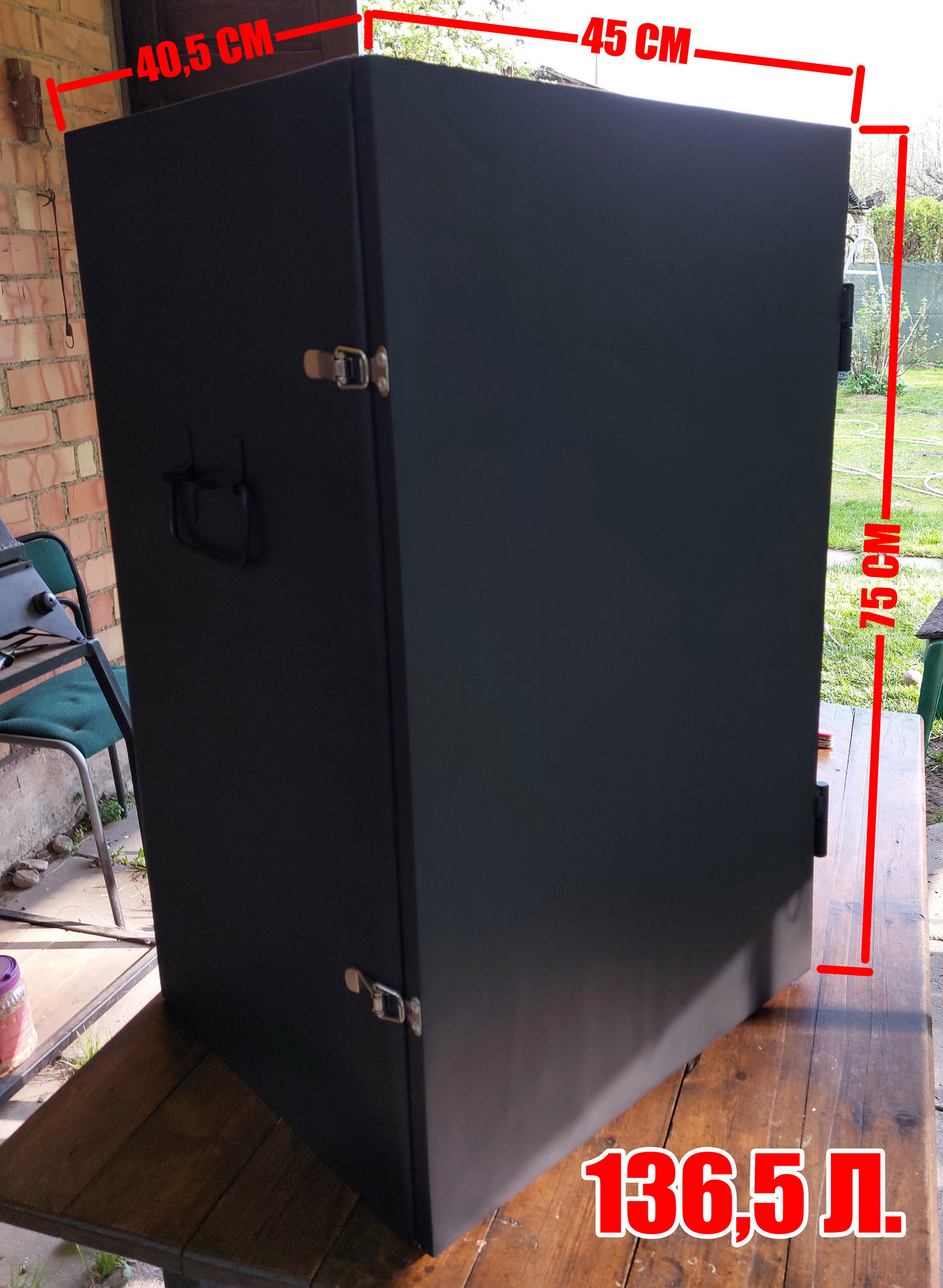Перед первым использованием, коптильню хорошенько прогреть и прокоптить пустую. Прогревать минут 30-40, чтобы запеклась краска.